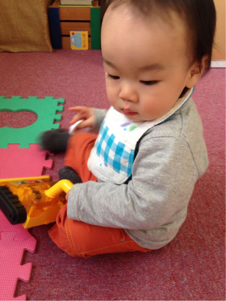 お辞儀をしながらおもちゃで遊んでいるRくんが可愛いです!