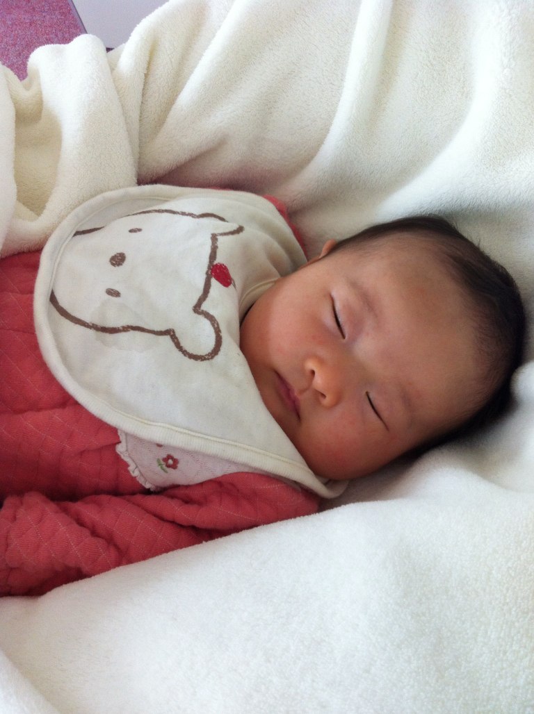ママからお乳をもらって準備O.K.でしたが、ママが治療に行かれる頃大きな泣き声を聞かせてくれました。それもまた可愛いのです。すぐに抱っこするとママが戻って来られるまでスヤスヤと良く眠ってくれました♡