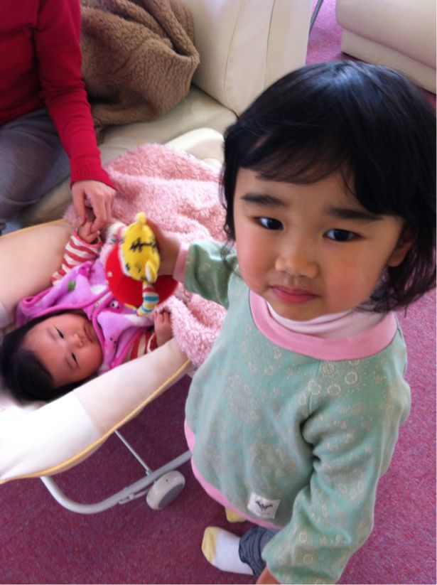 Yちゃんはとっても素敵なお姉ちゃんぶりで、ずっとMちゃんにおもちゃを見せたり、「赤ちゃん、笑ったよー」と嬉しそうでした。お姉ちゃんがおられるMちゃんもYお姉ちゃんが大好きな様子で、何度もにっこり、カワイイ笑顔を見せてくれていました。