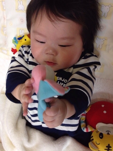 とてもいい子なKくんはママが治療中もポートカイロのおもちゃでとてもいい子に待っていてくれました(*゚▽゚*)