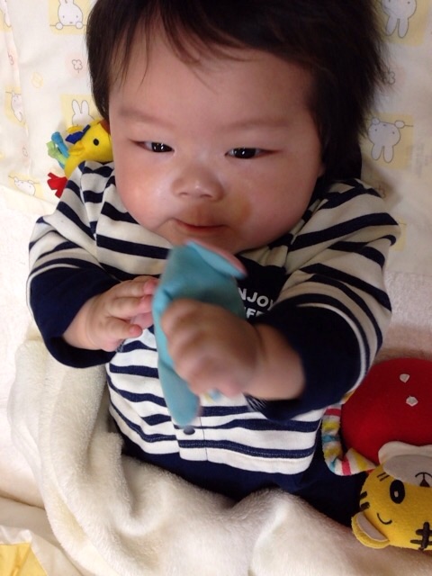 治療を終えたママが一言声をかけるとママの声に反応して飛び起きたKくん♪