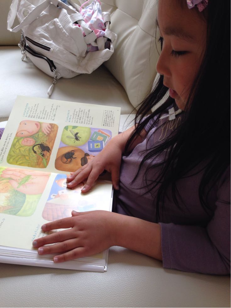 Kちゃんは読んでいる途中、首が痛いのか上に向いて頭を上にして動かしていました。