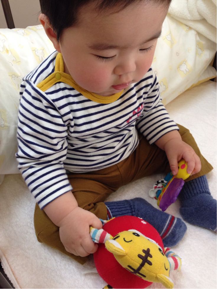 前はつかまり立ちをし始めた時でしたが、今ではちょっとずつ歩き始めているそうです(*^_^*)