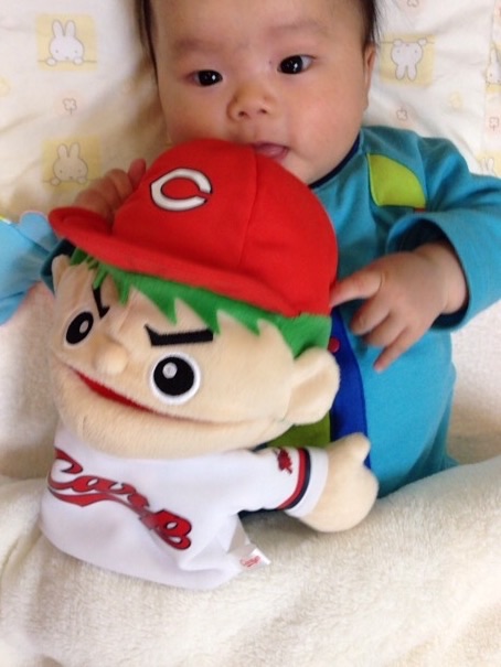 カープ坊やのぬいぐるみがお気に入りだそうで、待っている間もずっと持って遊んでいました♪