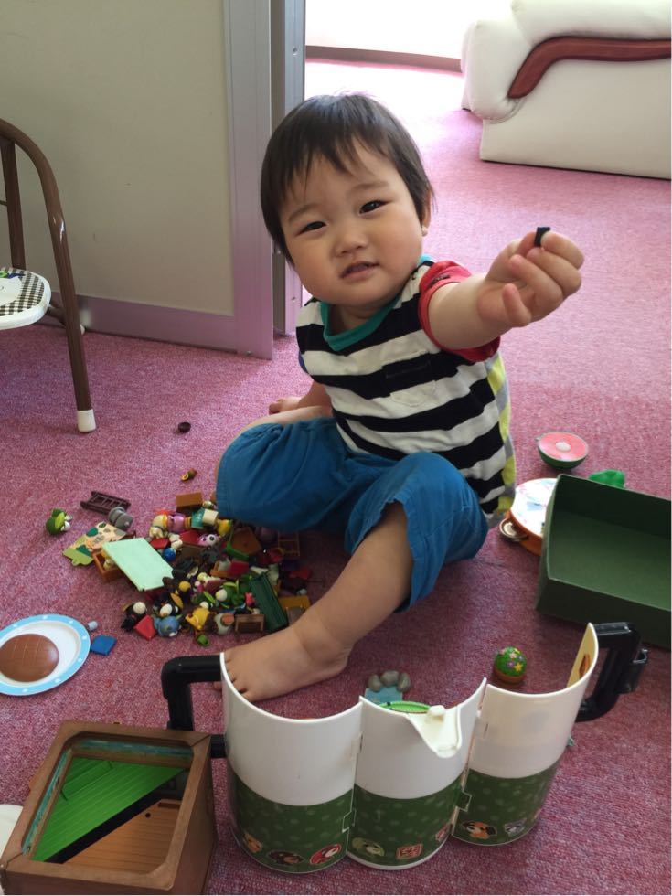こちらはママと一緒に来てくれた間もなく2歳になるUくんです。最初ちょっと恥ずかしそうにママにくっついておられましたが、ママが治療に行かれると私と遊んでくれました♪(´ε` )