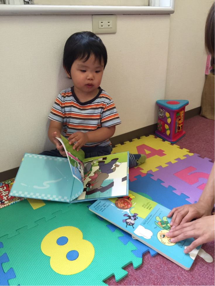 アンパンマンやトイストーリーが好きなSくんは、来てすぐに前回遊んだアンパンマンのパズルを探されて、見つかると忙しそうに沢山の絵本やおもちゃで楽しんでくれました。