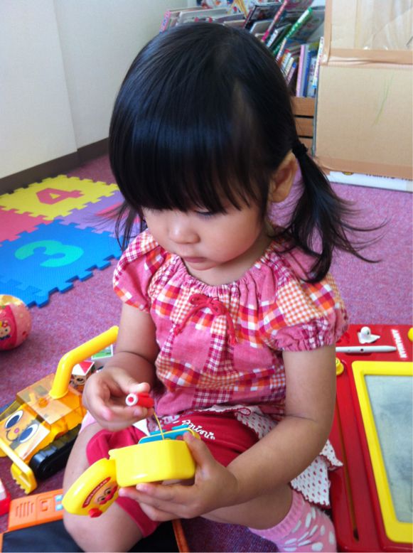 初めては、少しはずかしそうにして、ママに抱っこされていたけど、ママが治療に行かれて、キッズルームへ行っておもちゃで遊んでいると、いっぱいいろんなお話しをしてくれました(*^_^*)