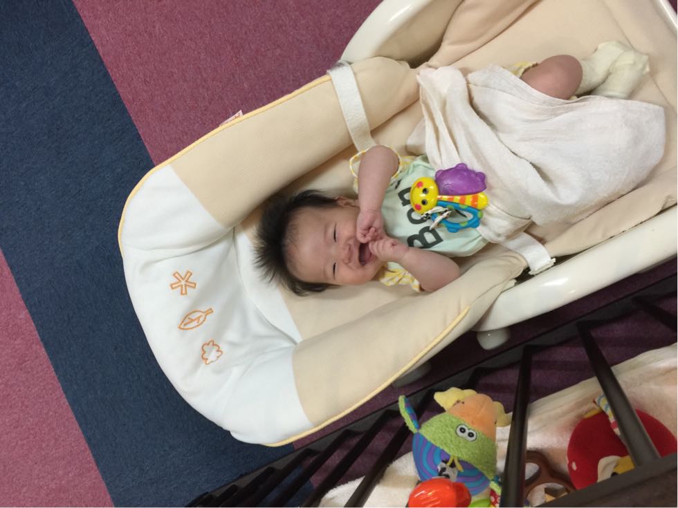 今日、朝一番にママと来てくれたのは、3カ月を迎えられたHくんです。ご機嫌さんで手足を動かしたり、お声も出してとても元気そうでした*\(^o^)/*