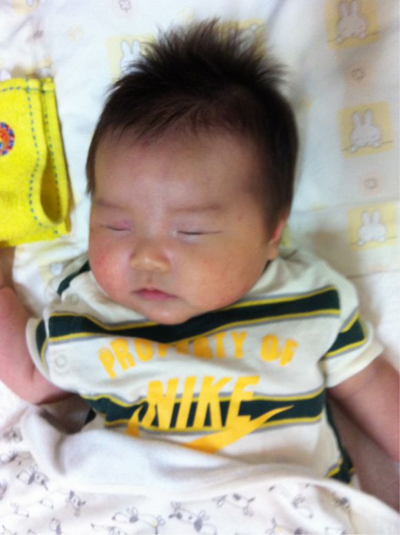 ママが、治療に行かれて、始めは泣いていたけれど、そのうち寝てしまいました(^^)