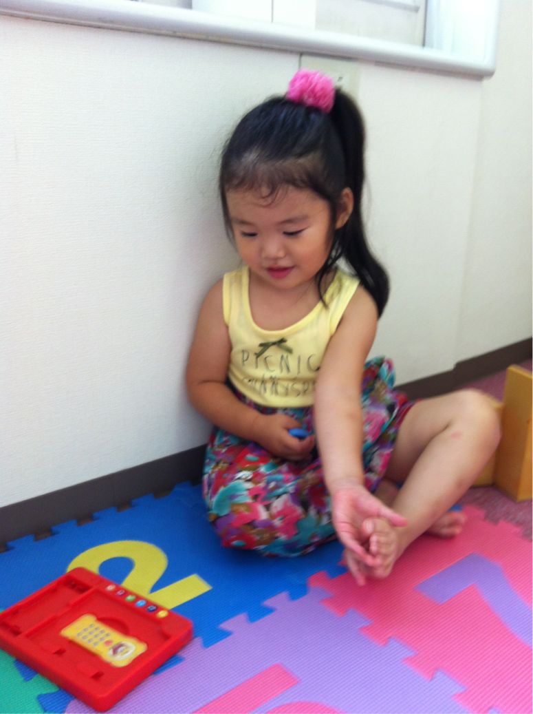 妹のMちゃんは、お姉ちゃんが遊んでいるのを見て、一緒に遊びたくなったみたいで興味心身でした(^ν^)