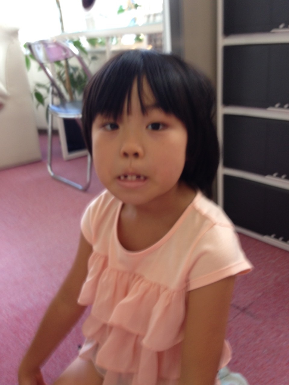 NHKの教育番組で放送している、ピタゴラスイッチが大好きで、真剣な顏で観ている所をパチリと激写させてもらいました(^∇^)