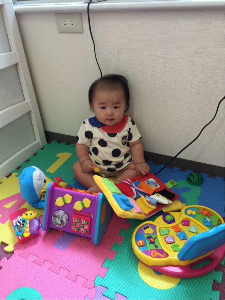今朝、ママと一緒に来てくれたRちゃんです。生後10ケ月のRちゃんはママと離れたくなくて、涙がこぼれていましたが、上手に座っておもちゃで遊んでくれたり、微笑んでくれたりしてとっても可愛いです。