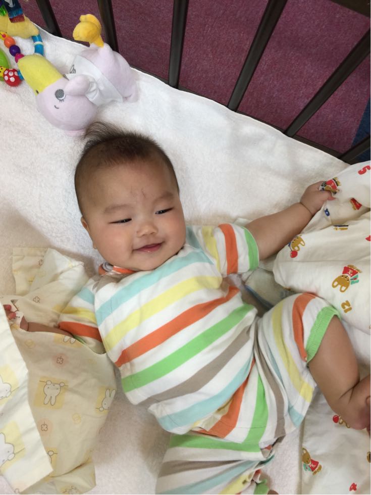 今日、ママと一緒に来てくれた5ヶ月のYくんです。ポートカイロにいる間、ずっとニコニコ、ご機嫌さんで遊んでくれました。ベビーベッドで手足を元気いっぱい動かして、寝返りも見せてくれて、可愛い声も聞かせてくれて、エネルギーをもらいましたよ(o^^o)
