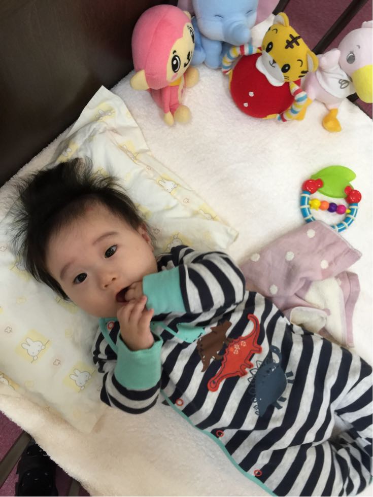 4月生まれで今、5ヶ月になられるそうで、寝返りを何度も見せてくれました。とーっても笑顔が可愛くて、もうメロメロです