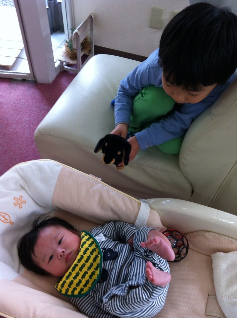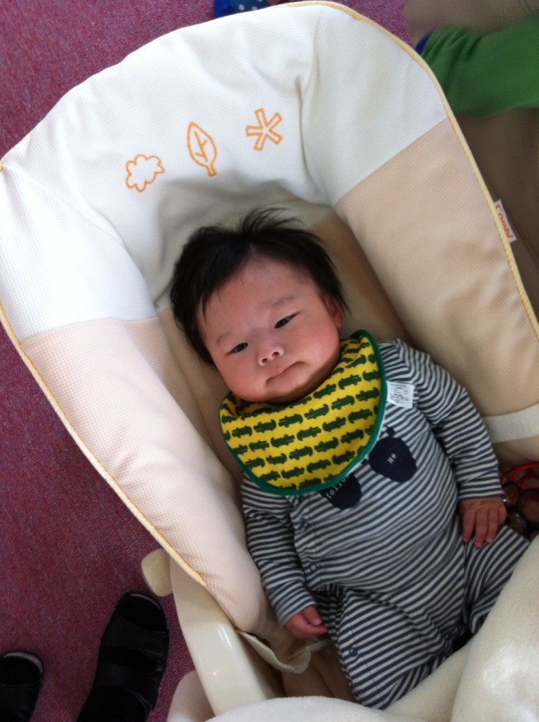 手足をバタバタされたり、Rくんを目で追ったり、おもちゃをチュパチュパされたり…抱っこしたらちょっと眠たくなったかなあ。帰りのお車で寝たかなあ?