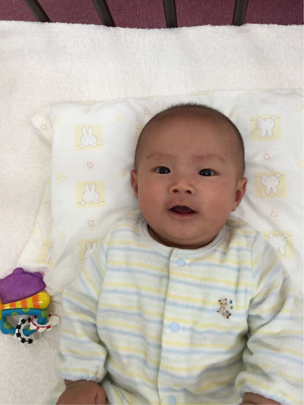 続きまして、生後2ヶ月のOくんが今週も来てくれました。最初はまだまだ眠たい感じでウトウトされていましたが、途中からお目パッチリさんになられたと思うと、笑顔でアウアウ…と沢山お話してくれました。