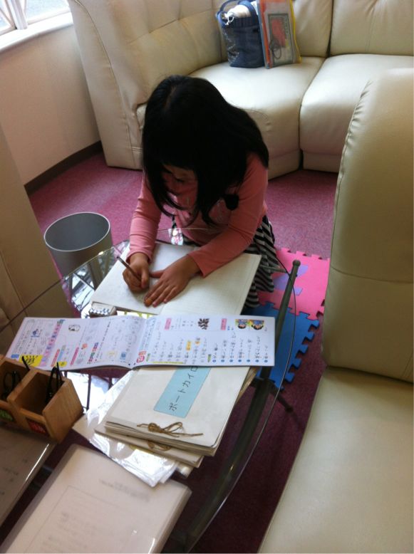 お母さんと一緒に来てくれたHちゃんです~(^^)小学生になると、みんな宿題を頑張っています!私が、久しぶりにあえて、喋りすぎてみんなの邪魔をしていましたが(^^;)