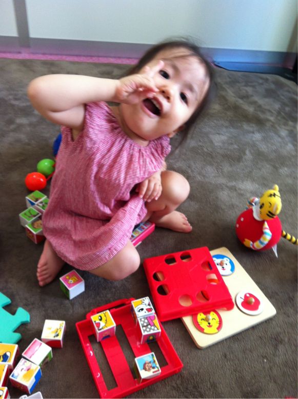 ママが施術を受けられている間も、しまじろうの歌でタンバリンを叩いたりパズルで遊んだりと、楽しく過ごしました♬