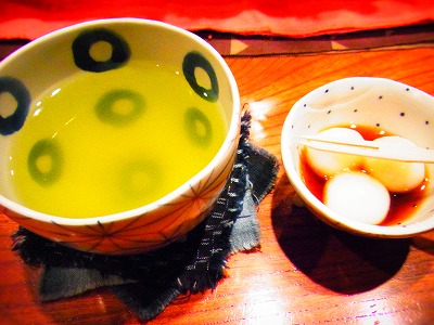 到着すると、手作りのお団子&お茶のおもてなし