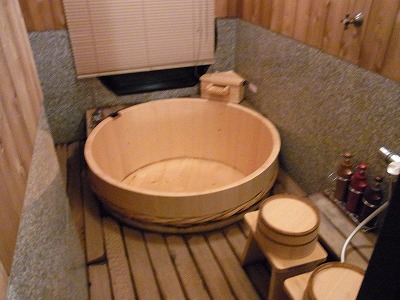 奥には専用の高野槙の桶風呂
