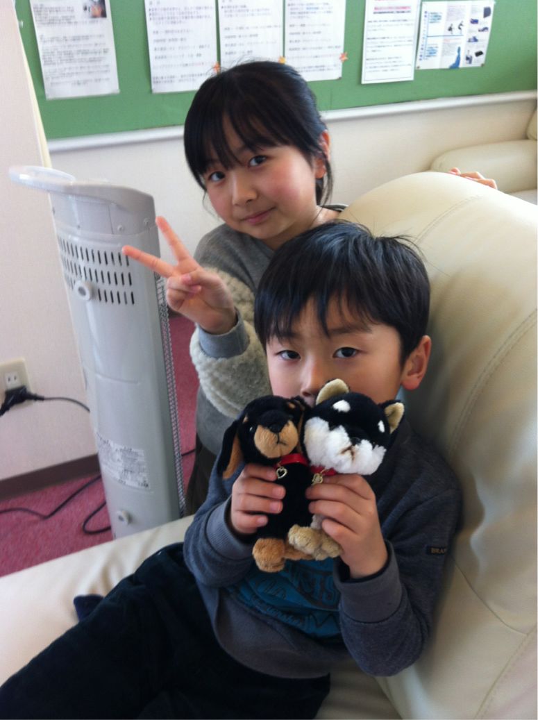 弟のRくんも私が飼っている犬のことをいつも気にかけてくれて、この日もぬいぐるみを持って来てくれました。ダックスフンドの方が「シュウくん」、もう一匹の方は「わんくん」と教えてくれました。またお休みの日にはお母さんと一緒に来てね♡