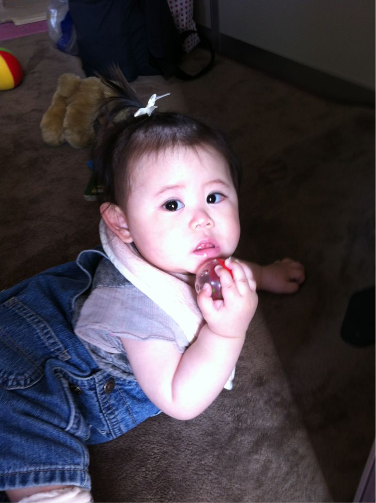 Tちゃんは、現在8か月で、ずりバイもお座りもとってもお上手です。
