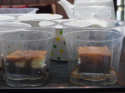 カップにスポンジを入れ、コーヒーソースをたっぷり塗ります