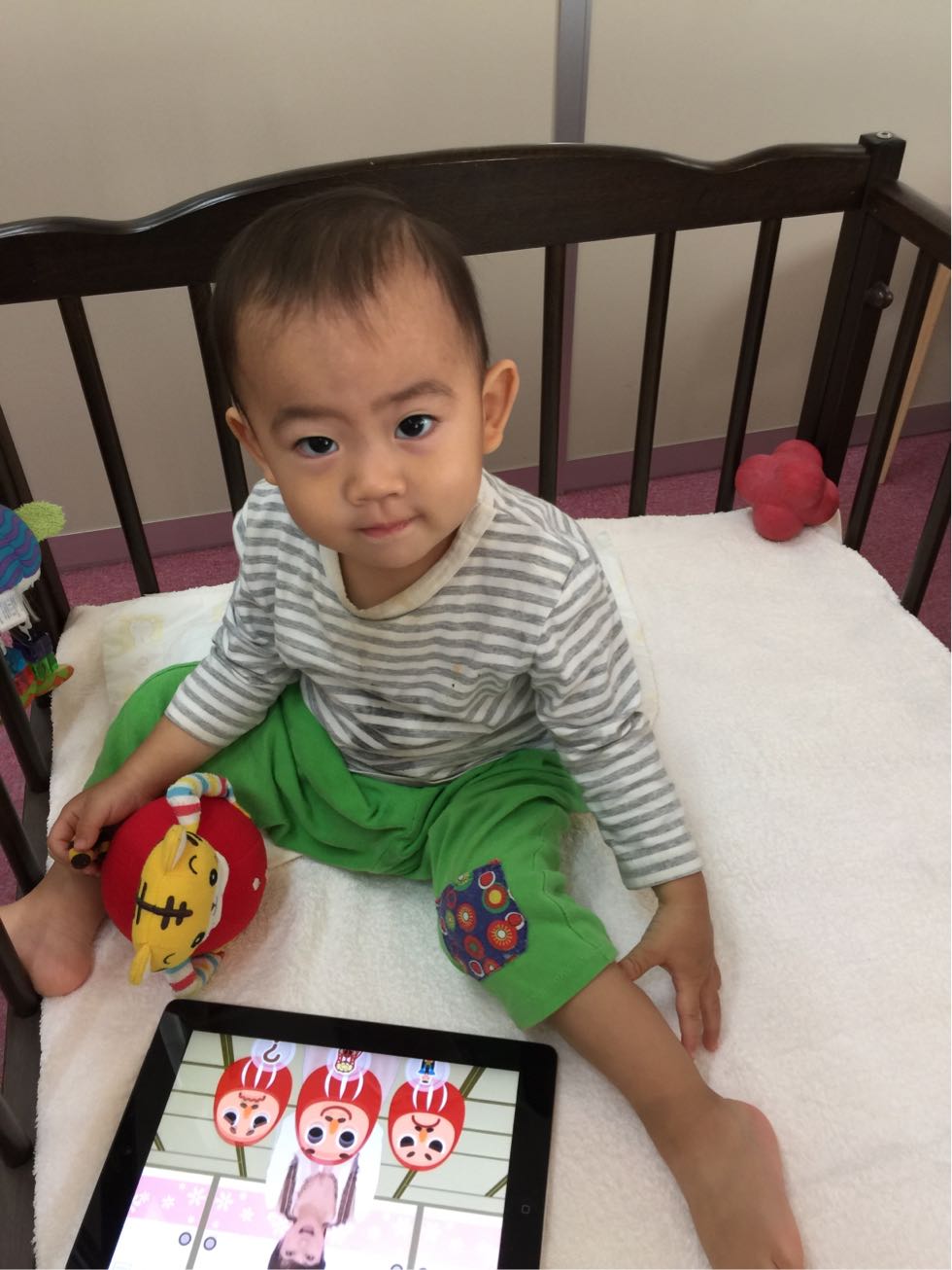 Rくんは、キッズルームでブロックなどのおもちゃで少し遊ばれて、ママが施術室に入られると、受付の横にあるベビーベッドに上がりたいと言われて、ベッドで歌遊びの動画を観ながら楽しく過ごしてくれました♪(๑ᴖ◡ᴖ๑)♪