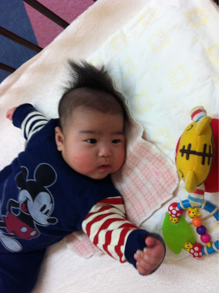 そして次に来てくれた前後3ヶ月のAくんです。Aくんは、ちょっと眠たくて抱っこが良かったようです☆〜時々お話しながら笑ってくれたり、色々な表情を見せてくれました。ママが施術から戻って来られるまで頑張って待ってくれました\( ˆoˆ )/