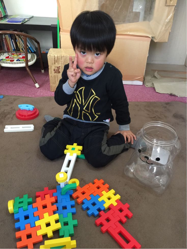 最初は少しだけ恥ずかしそうにされてましたが、ブロックを上手につなげられて、作品を作ってくれましたよ