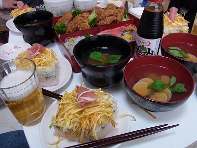 はまぐりのお吸い物に、お寿司でお祝い