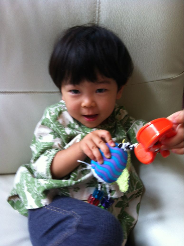 ズリバイで上手におもちゃをとりに行かれ、遊びを楽しんでおられました。