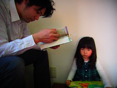 仲良く、二人で座って、Rチャンも絵本を読んで勉強しています