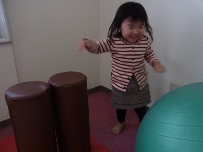 治療終了後のお父さんに飛びついて遊んでもらっていました