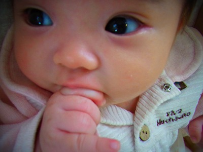 お腹すいたかな?ちゅぱちゅぱ指をくわえています