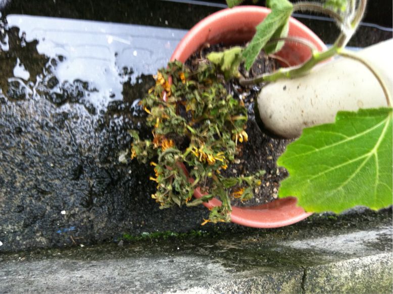 私は、雨が降ると思い、お水をあげなかったら、一つ花が枯れてしまいました