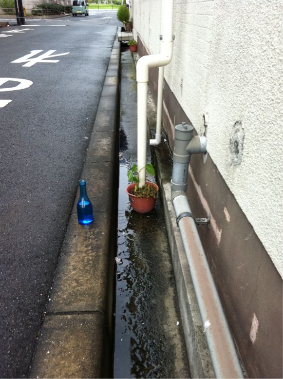 そこから、5階、4階、3階、2階と...各部屋のクーラーのホースがこの溝に流れるように設置してある為にポタポタと水滴が出てくるのです