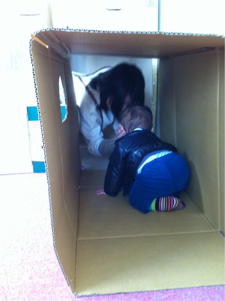 お姉ちゃんと一緒にダンボールハウスに入ってとっても楽しそう~♫