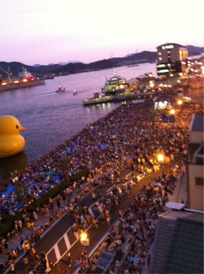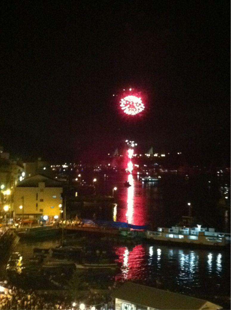毎年、中国新聞の花火大会の写真はポートカイロの屋上から撮影しているんですよ(^^)